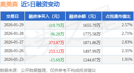 证券之星消息,1月29日,奥美森(920080)融资买入127.42万元,融资偿还247.22万元,融资净卖出119.79万元,融资余额1655.79万元。