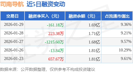 证券之星消息,1月29日,司南导航(688592)融资买入1591.04万元,融资偿还1752.22万元,融资净卖出161.18万元,融资余额1.69亿元。