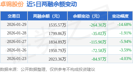 证券之星消息,1月29日,卓锦股份(688701)融资买入120.56万元,融资偿还384.85万元,融资净卖出264.3万元,融资余额1535.57万元。
