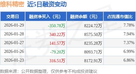 证券之星消息,1月29日,维科精密(301499)融资买入1406.58万元,融资偿还1757.36万元,融资净卖出350.78万元,融资余额8224.72万元,近20个交易日中有12个交易日出现融资净买入。