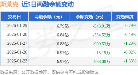 证券之星消息,1月29日,斯莱克(300382)融资买入2601.46万元,融资偿还3148.66万元,融资净卖出547.2万元,融资余额6.79亿元。