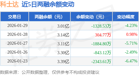 证券之星消息,1月29日,科士达(002518)融资买入4034.32万元,融资偿还5365.02万元,融资净卖出1330.7万元,融资余额2.98亿元。