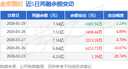 证券之星消息,1月29日,金安国纪(002636)融资买入2.03亿元,融资偿还2.2亿元,融资净卖出1685.85万元,融资余额7.33亿元,近20个交易日中有11个交易日出现融资净买入。