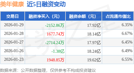 证券之星消息,1月29日,美年健康(002044)融资买入2.05亿元,融资偿还2.26亿元,融资净卖出2152.86万元,融资余额17.92亿元。