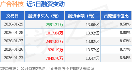 证券之星消息,1月29日,广合科技(001389)融资买入2.02亿元,融资偿还2.28亿元,融资净卖出2591.31万元,融资余额13.66亿元,近20个交易日中有13个交易日出现融资净买入。