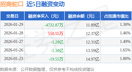 证券之星消息,1月29日,招商蛇口(001979)融资买入8690.45万元,融资偿还1.34亿元,融资净卖出4732.87万元,融资余额11.89亿元。