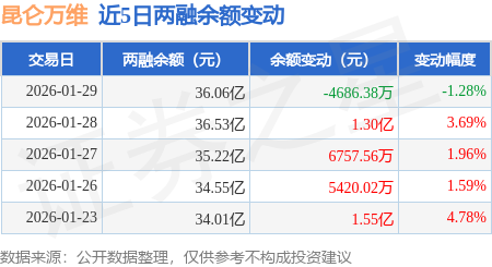 证券之星消息,1月29日,昆仑万维(300418)融资买入9.37亿元,融资偿还9.86亿元,融资净卖出4977.97万元,融资余额35.99亿元。