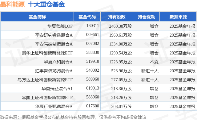 重仓晶科能源的前十大公募基金请见下表: