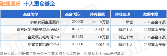 根据2025基金年报公募基金重仓股数据,重仓该股的公募基金共4家,其中持有数量最多的公募基金为泰信基金的泰信发展主题混合。泰信发展主题混合目前规模为15.47亿元,最新净值2.097(1月29日),较上一交易日下跌1.64%,近一年上涨91.51%。该公募基金现任基金经理为黄潜轶。黄潜轶在任的基金产品包括:泰信现代服务业混合,管理时间为2021年2月2日至今,期间收益率为-2.75%;