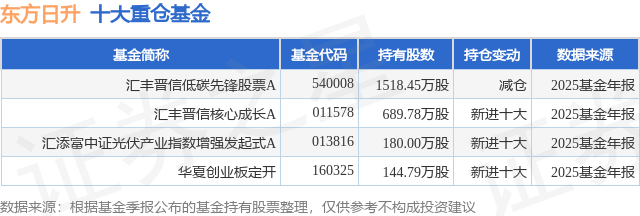 重仓东方日升的公募基金请见下表:
