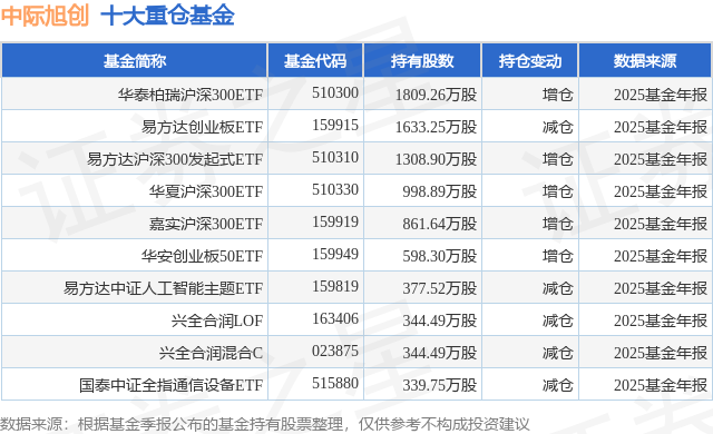 重仓中际旭创的前十大公募基金请见下表: