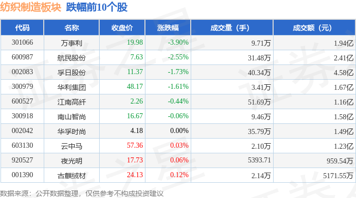 从资金流向上来看,当日纺织制造板块主力资金净流出1.95亿元,游资资金净流入6652.04万元,散户资金净流入1.28亿元。纺织制造板块个股资金流向见下表: