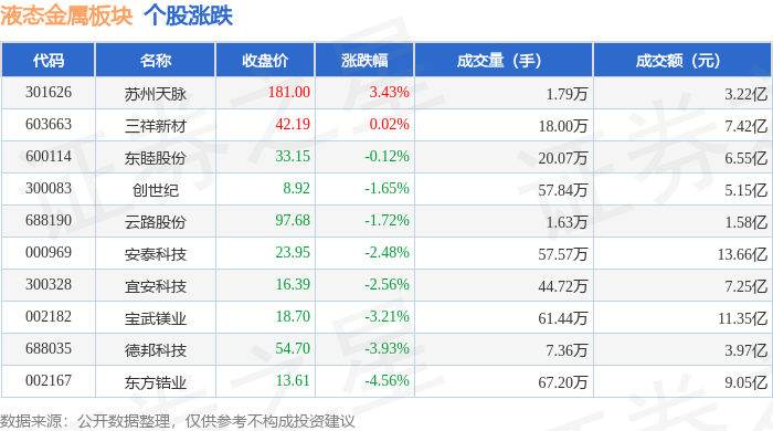 从资金流向上来看,当日液态金属板块主力资金净流出6.15亿元,游资资金净流入2867.2万元,散户资金净流入5.86亿元。液态金属板块个股资金流向见下表: