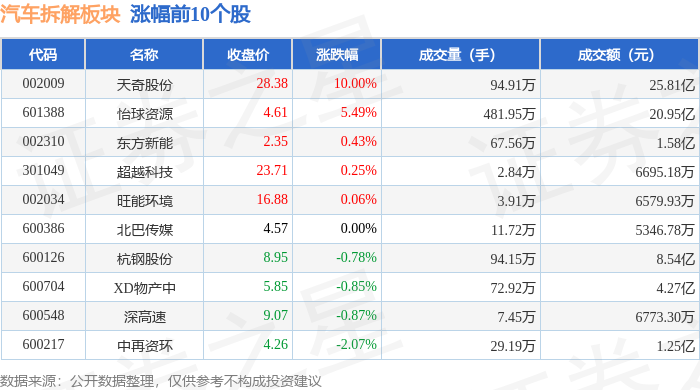 从资金流向上来看,当日汽车拆解板块主力资金净流出1.66亿元,游资资金净流出27.02万元,散户资金净流入1.66亿元。汽车拆解板块个股资金流向见下表: