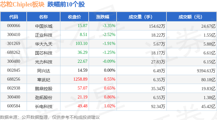 从资金流向上来看,当日芯粒Chiplet板块主力资金净流出2.27亿元,游资资金净流出1.49亿元,散户资金净流入3.76亿元。芯粒Chiplet板块个股资金流向见下表:
