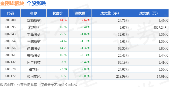 从资金流向上来看,当日金刚线板块主力资金净流出4.97亿元,游资资金净流入4200.56万元,散户资金净流入4.55亿元。金刚线板块个股资金流向见下表: