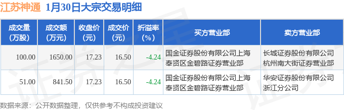 证券之星消息,1月30日江苏神通发生大宗交易,交易数据如下: