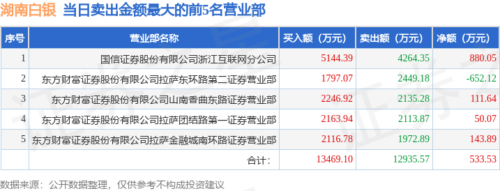 证券之星消息,沪深交易所2026年1月30日公布的交易公开信息显示,湖南白银(002716)因日跌幅偏离值达到7%的前5只证券登上龙虎榜。此次是近5个交易日内第4次上榜。