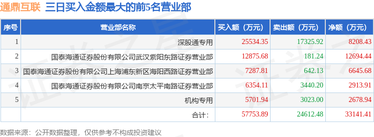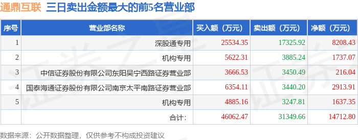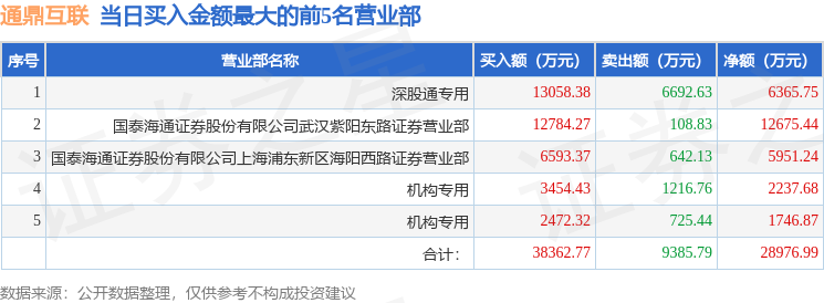 证券小知识:龙虎榜是交易所披露的竞价交易公开信息,现身龙虎榜的个股都是当日最为活跃的个股,是投资者日常重点关注的数据。交易所公布当日买入金额和卖出金额前五名的席位,其中一些席位代表特殊意义,如机构专用席位是指基金专用席位、券商自营专用席位、社保专用席位、券商理财专用席位、保险机构专用席位、保险机构租用席位、QFII专用席位等机构投资者买卖证券的专用通道和席位。深股通专用、沪股通专用为北向资金的交易席位。
