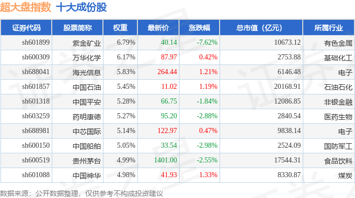 超大盘(000043)指数十大成份股详情如下:
