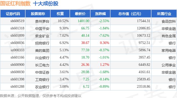 证券之星消息,1月30日,国证红利(399321)指数报收于7660.46点,跌1.64%,成交1519.9亿元,换手率0.51%。当日该指数成份股中,上涨的有10家,潍柴动力以2.2%的涨幅领涨,下跌的有38家,紫金矿业以7.62%的跌幅领跌。