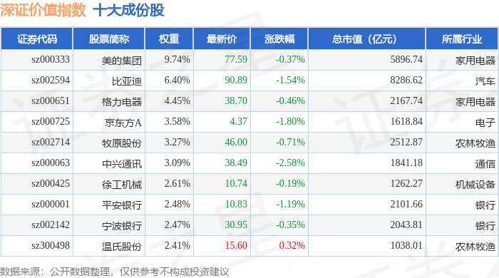 深证价值(399348)指数十大成份股详情如下: