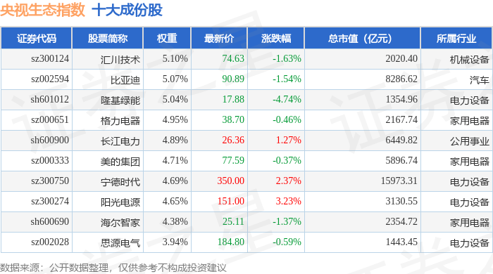 证券之星消息,1月30日,央视生态(399556)指数报收于2845.23点,跌0.89%,成交1085.6亿元,换手率1.37%。当日该指数成份股中,上涨的有16家,亿纬锂能以5.07%的涨幅领涨,下跌的有31家,天齐锂业以7.73%的跌幅领跌。