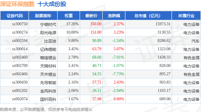 深证环保(399638)指数十大成份股详情如下: