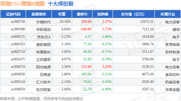 深指ESG增强R(470032)指数十大成份股详情如下: