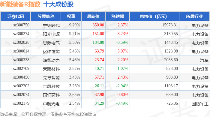 新能装备R(470043)指数十大成份股详情如下:
