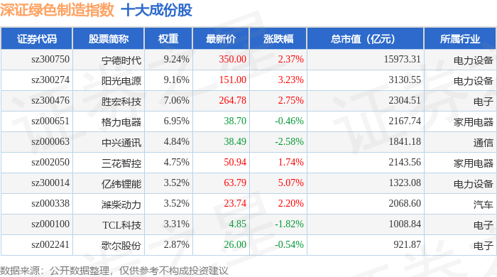 深证绿色制造(970069)指数十大成份股详情如下: