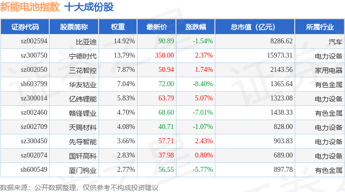 新能电池(980032)指数十大成份股详情如下: