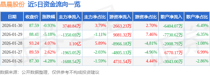 1月30日的资金流向数据方面,主力资金净流入3740.84万元,占总成交额3.79%,游资资金净流入2663.23万元,占总成交额2.7%,散户资金净流出6404.07万元,占总成交额6.49%。