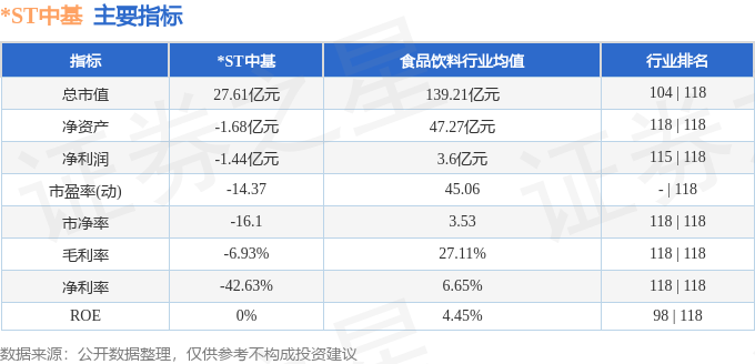 *ST中基2025年三季报显示,前三季度公司主营收入3.54亿元,同比上升18.92%;归母净利润-1.44亿元,同比下降230.9%;扣非净利润-2.07亿元,同比下降348.55%;其中2025年第三季度,公司单季度主营收入1.09亿元,同比上升107.32%;单季度归母净利润-6938.43万元,同比下降25.37%;单季度扣非净利润-1.28亿元,同比下降158.98%;负债率113.43%,财务费用3281.58万元,毛利率-6.93%。*ST中基(000972)主营业务:大包装番茄酱、小包装番茄制品及番茄红素软胶囊等产品的研发、生产制造和销售业务。