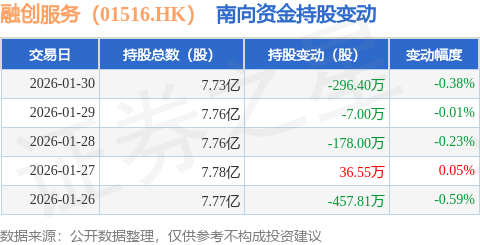 证券之星消息,1月30日南向资金减持296.4万股融创服务(01516.HK)。近5个交易日中,获南向资金减持的有4天,累计净减持902.66万股。近20个交易日中,获南向资金减持的有12天,累计净减持1095.0万股。截至目前,南向资金持有融创服务(01516.HK)7.73亿股,占公司已发行普通股的25.27%。