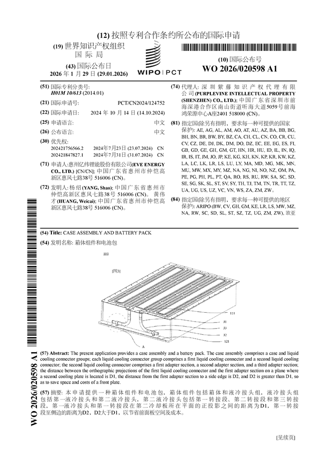 证券之星消息,根据企查查数据显示亿纬锂能(300014)公布了一项国际专利申请,专利名为“箱体组件和电池包”,专利申请号为PCT/CN2024/124752,国际公布日为2026年1月29日。