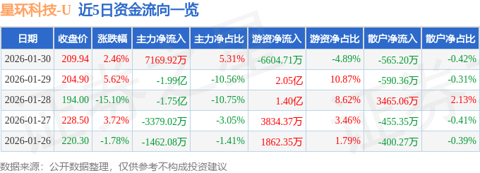 证券之星消息,截至2026年1月30日收盘,星环科技(688031)报收于209.94元,上涨2.46%,换手率6.75%,成交量6.34万手,成交额13.5亿元。