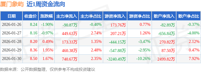 资金流向数据方面,本周厦门象屿主力资金合计净流入1733.14万元,游资资金合计净流出3851.56万元,散户资金合计净流入2118.42万元。本周资金流向一览见下表: