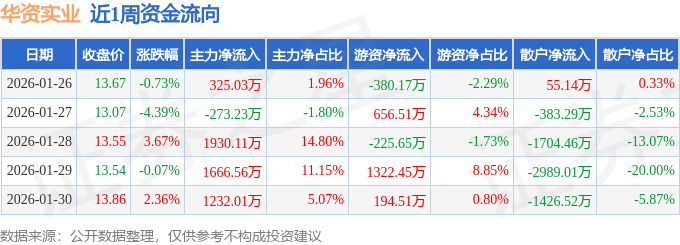 资金流向数据方面,本周华资实业主力资金合计净流入4880.48万元,游资资金合计净流入1567.65万元,散户资金合计净流出6448.13万元。本周资金流向一览见下表: