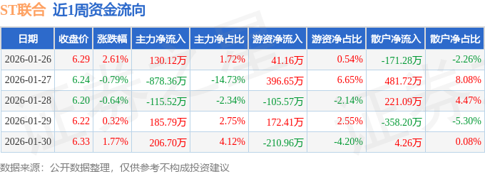 资金流向数据方面,本周ST联合主力资金合计净流出471.28万元,游资资金合计净流入293.69万元,散户资金合计净流入177.59万元。本周资金流向一览见下表: