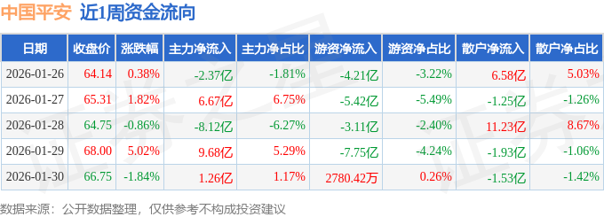 资金流向数据方面,本周中国平安主力资金合计净流入7.1亿元,游资资金合计净流出20.2亿元,散户资金合计净流入13.1亿元。本周资金流向一览见下表:
