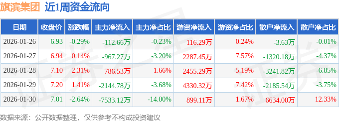 资金流向数据方面,本周旗滨集团主力资金合计净流出9971.31万元,游资资金合计净流入1.01亿元,散户资金合计净流出117.16万元。本周资金流向一览见下表: