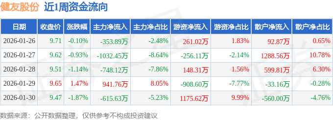 资金流向数据方面,本周健友股份主力资金合计净流出1808.33万元,游资资金合计净流入420.25万元,散户资金合计净流入1388.08万元。本周资金流向一览见下表: