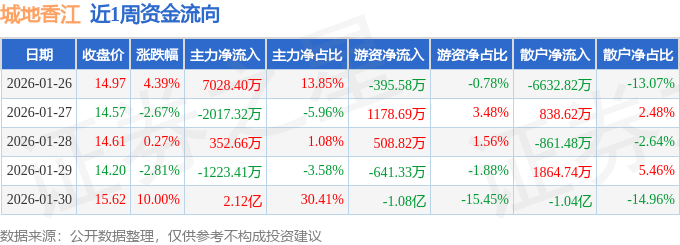 资金流向数据方面,本周城地香江主力资金合计净流入2.53亿元,游资资金合计净流出1.01亿元,散户资金合计净流出1.52亿元。本周资金流向一览见下表: