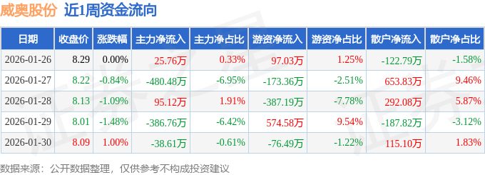 资金流向数据方面,本周威奥股份主力资金合计净流出784.97万元,游资资金合计净流入34.58万元,散户资金合计净流入750.39万元。本周资金流向一览见下表: