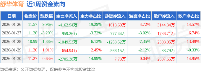 资金流向数据方面,本周舒华体育主力资金合计净流出8222.17万元,游资资金合计净流出1575.79万元,散户资金合计净流入9797.95万元。本周资金流向一览见下表: