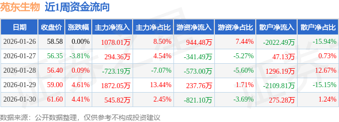 资金流向数据方面,本周苑东生物主力资金合计净流入3067.05万元,游资资金合计净流出553.36万元,散户资金合计净流出2513.7万元。本周资金流向一览见下表: