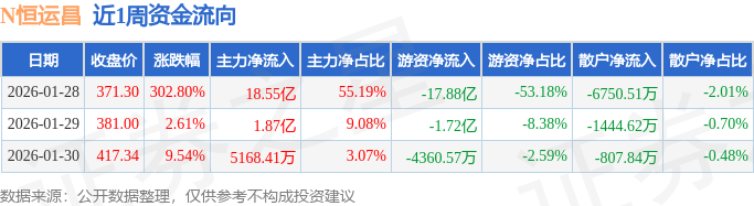 资金流向数据方面,本周C恒运昌主力资金合计净流入20.93亿元,游资资金合计净流出20.03亿元,散户资金合计净流出9002.97万元。本周资金流向一览见下表: