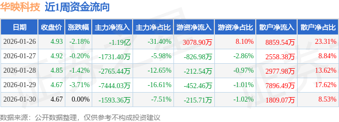资金流向数据方面,本周华映科技主力资金合计净流出2.55亿元,游资资金合计净流入1371.21万元,散户资金合计净流入2.41亿元。本周资金流向一览见下表: