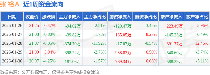资金流向数据方面,本周张 裕A主力资金合计净流出1087.83万元,游资资金合计净流入1746.68万元,散户资金合计净流出658.85万元。本周资金流向一览见下表: